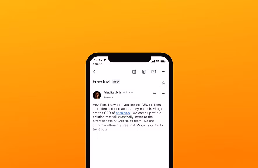 I use cold emails in order to get the majority of my customers. I canβt believe I didnβt find this tool sooner! It writes personalized emails for each recipient so I donβt have to spend time writing dozens of emails by hand. Its sales signals immediately show you what will work best with each individual, saving you time and effort. ezsales.ai also gives higher response rates than I ever could by hand.